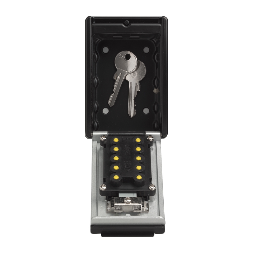 Le coffre à combinaison pour clés 767 Abus est équipé d'un clapet de protection verrouillable pour garder les touches à l'abri des intempéries.
